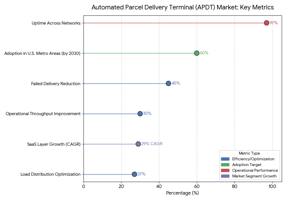 The APDT market represents a pivotal innovation in last-mile logistics, bridging cost-efficiency and sustainability. By 2030, over 60% of parcels in U.S. metro areas will interact with automated terminals at some stage of delivery. AI-powered predictive allocation systems are transforming delivery workflows, optimizing load distribution by 27% and reducing failed delivery attempts by 45%. Terminals equipped with IoT sensors and cloud-based tracking enhance real-time visibility, allowing carriers to maintain >97% uptime across networks. Capital costs per unit, averaging $16,000–$22,000, are offset by annual operating savings of $4,500–$6,000 per terminal. FedEx and UPS have initiated autonomous parcel loading pilots that improve operational throughput by 30%, while Amazon’s AI logistics stack dynamically assigns lockers based on delivery probability scoring. The SaaS layer—including predictive maintenance, analytics dashboards, and API-based routing—represents a fast-growing segment, expanding at 29% CAGR. Urban policy incentives, especially in California, Texas, and New York, are accelerating terminal zoning and energy-efficient infrastructure credits. By 2030, the integration of AI, robotics, and renewable energy-powered lockers will redefine last-mile delivery efficiency, positioning automated terminals as the backbone of the U.S. e-commerce logistics ecosystem.