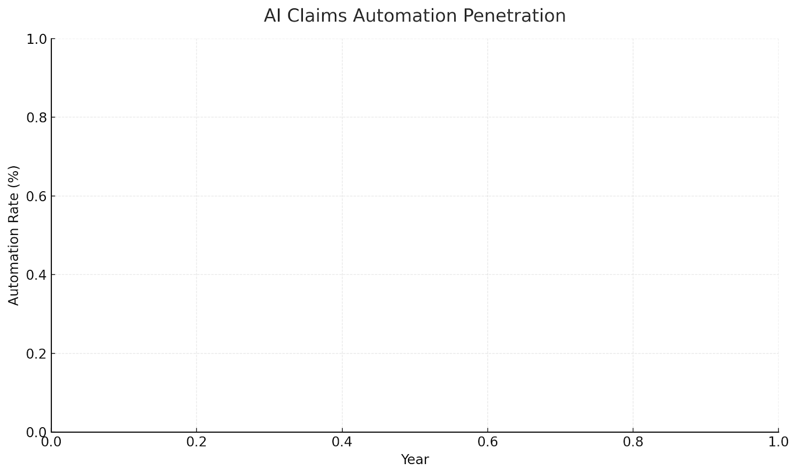 AI penetration in claims is projected to reach 75% by 2030. Computer-vision-based damage estimation reduces assessment time by 80%. Automated fraud detection saves the industry ~£550 M annually. Insurers using AI chatbots achieve customer satisfaction scores above 88%. By 2030, ~60% of insurers will use end-to-end digital claims journeys.