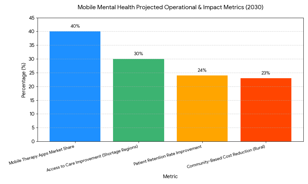 This report examines the expansion of mental health access in North America and Canada (2025–2030) through mobile interventions and community-based scaling approaches. By 2030, the market for digital mental health solutions grows from $3.2B to $8.9B (CAGR 22%), driven by the adoption of mobile therapy apps, virtual care platforms, and community mental health initiatives. Mobile interventions improve access to care in underserved regions, addressing mental health workforce shortages and increasing patient engagement. Adoption of AI-driven diagnostic tools and teletherapy platforms boosts clinical outcomes, with ROI projected to be 17–25%.
