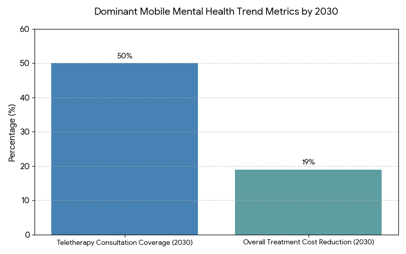 Several key trends are shaping the 2025–2030 landscape for digital mental health in North America. (1) Mobile-first interventions: The shift to mobile-first care models is expanding patient access and driving market growth, especially for underserved populations. Mobile therapy apps, combined with virtual care tools, are predicted to boost patient retention by +24% and streamline therapy delivery. (2) AI and machine learning integration: AI-driven platforms are improving diagnostic accuracy, reducing wait times for therapy, and enhancing patient engagement by delivering personalized care in real-time. (3) Teletherapy and hybrid care models: The continued growth of telehealth platforms will provide cost-effective solutions for remote patient care. By 2030, teletherapy is expected to cover over 50% of mental health consultations, particularly in rural and low-income regions. (4) Patient-centered design: The evolution of user-friendly apps and patient-centric care will address the needs of those with mental health conditions, increasing adherence and satisfaction. By 2030, mobile-first mental health interventions will drive efficiency gains in care delivery while reducing overall treatment costs by 19%. (5) Virtual community integration: Platforms that foster peer support groups and community-based mental health models are growing in popularity, improving long-term retention rates and decreasing care disparities.