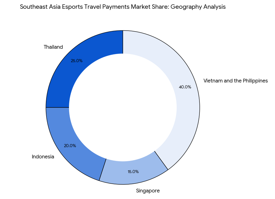 Thailand dominates the regional esports travel payment ecosystem with 25% market share, driven by large-scale tournaments like PUBG Global Series and Arena of Valor World Cup. Indonesia, with 20% share, is expanding through strong digital wallet penetration and fintech investment. Singapore (15%) leads in cross-border payment innovation, serving as the financial backbone for ASEAN integration. Vietnam and the Philippines are emerging hotspots for mobile-first gaming and blockchain-enabled travel payments. By 2032, ASEAN interoperability will allow instant transfers across all major currencies in the region, positioning Southeast Asia as the global epicenter for esports travel finance.