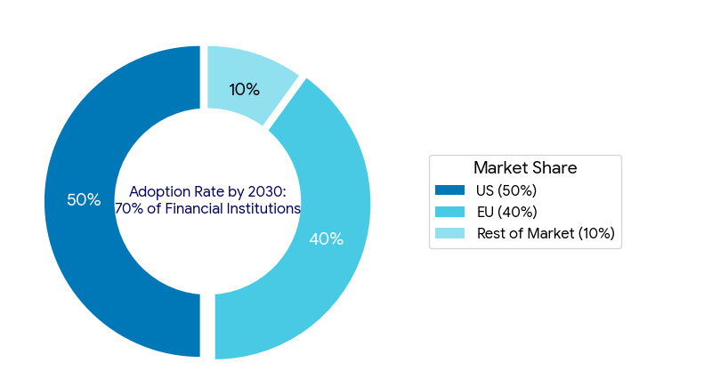 The quantum computing market for fraud detection will be dominated by the US, which is expected to account for 50% of the market share by 2030, with EU markets contributing 40%. The US will benefit from early adoption and large-scale investments in quantum computing infrastructure, with major financial institutions leading the charge. In the EU, GDPR-compliant quantum solutions will drive adoption, especially in financial hubs like London, Frankfurt, and Paris. By 2030, quantum-powered fraud detection will reduce false positives by 35% and improve detection accuracy by 25%, benefiting both regions. Cross-border fraud detection will increase by 30%, enhancing financial security for international transactions. Data security regulations such as GDPR in the EU will impact adoption, as financial institutions will need to comply with strict privacy and data protection standards. In the US, quantum computing will offer a faster solution, with real-time fraud detection being 2–3 times faster than traditional methods. By 2030, quantum-powered fraud detection will be adopted by 70% of financial institutions, enabling better fraud risk management, higher ROI, and increased market share for early adopters.